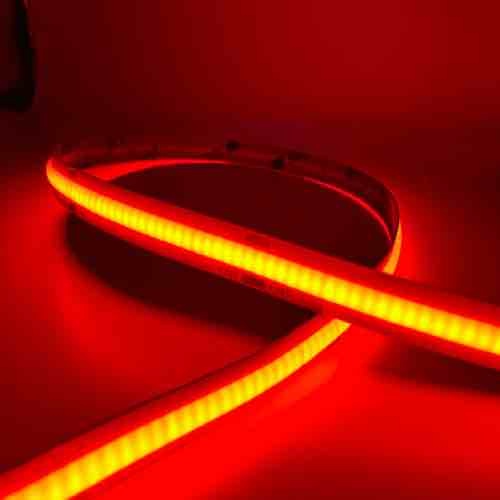 Onze rode COB LED strips met 1 vaste kleur zijn van hoge kwaliteit. Deze COB strips beschikken over 480 LED’s per meter dit zorgt voor een super egale licht lijn zelfs in de laagste profielen.