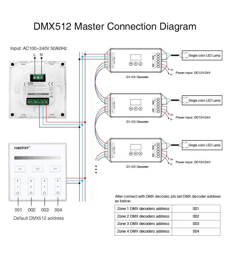 Deze voordelige DMX oplossing voor het bedienen van Dual white / CCT LED is gemaakt van de hoogste kwaliteit materialen. U kunt de kleur eenvoudig selecteren en ook is het mogelijk de strips in maar liefst 4 zones te bedienen. Dimmen kan van 0,01% tot 100% zo heeft u oneindig veel mogelijkheden met deze LED strip dimmer.