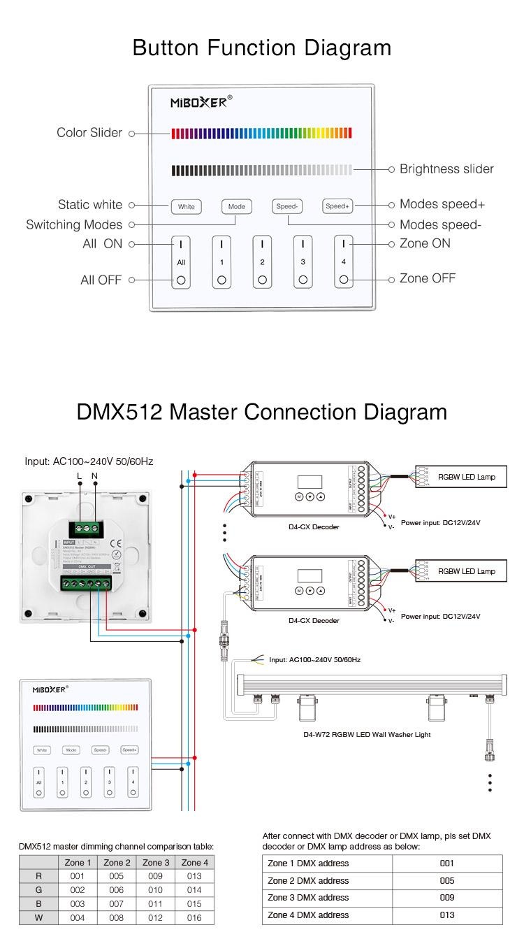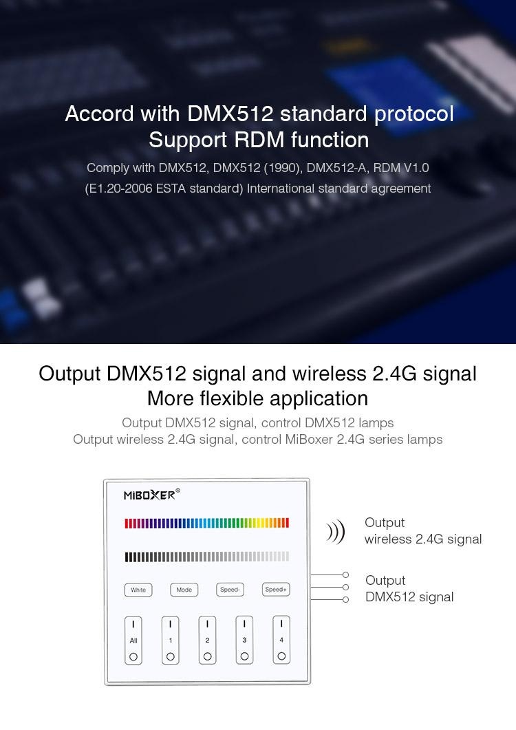 DMX RGBW LED wanddimmer – DMX 512 en Draadloos MIBOXER – X4