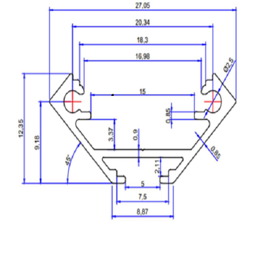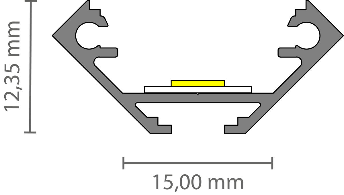 De afmetingen van dit LED profiel zijn 27.05 x 12.35 mm.