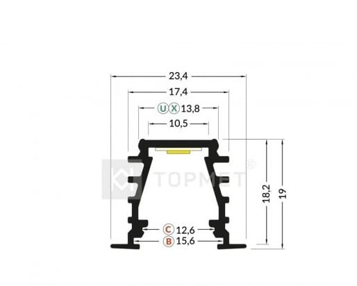 LED plafond profiel inclusief opaal afdekking 23.4 mm x 19 mm - GYPROC10ALU