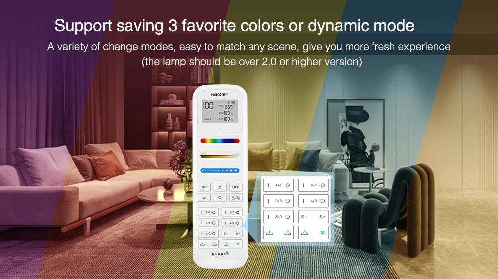 De LED afstandsbediening is geschikt voor de volgende LED strips : Led strips met 1 enkele kleur, Dual White, CCT, RGB kleur of RGBW, RGBWW + RGBCCT.