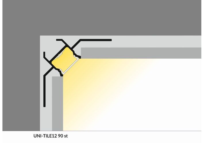 Tegel profiel voor een lichtlijn in de binnenhoek. Ideaal voor COB LED strips.