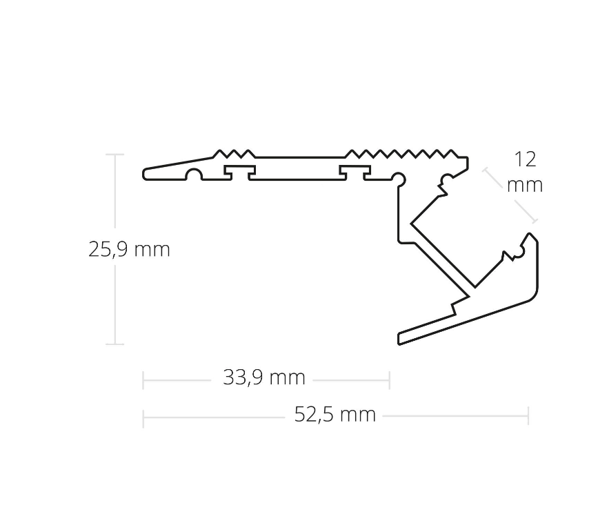 LED trapprofiel inclusief opaal klikafdekking 52,5 mm x 25,9 mm – D12
