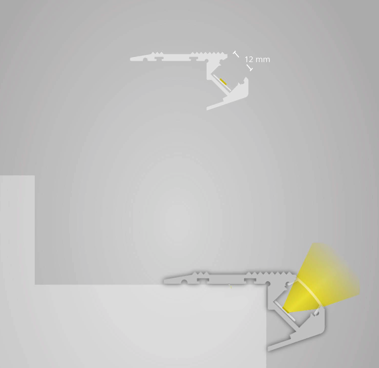 - De afmetingen van dit aluminium LED strip taptrede profiel: