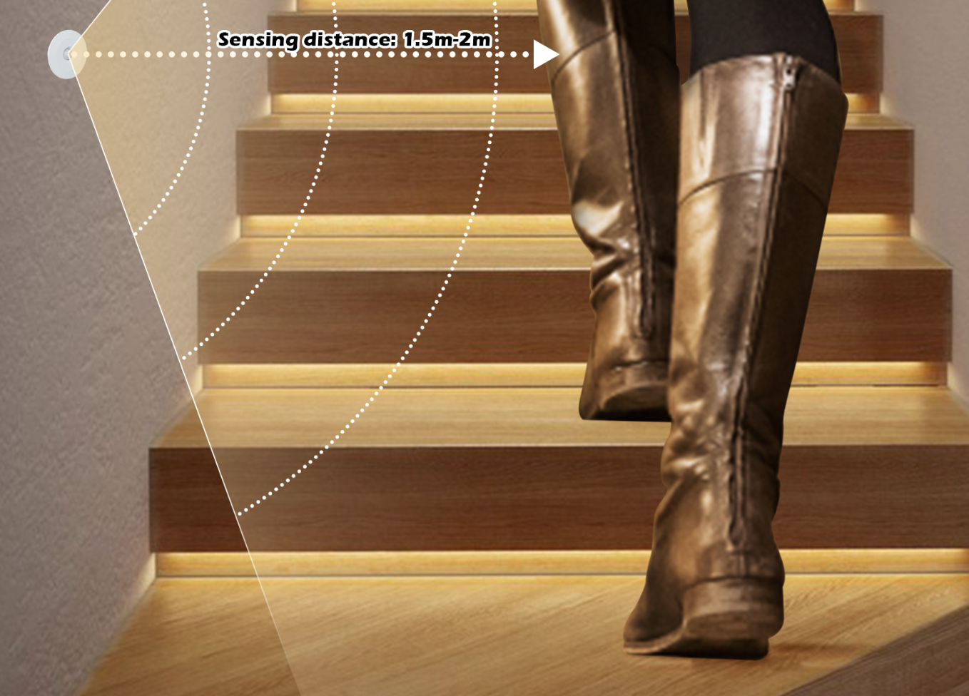 - Bewegingssensor / lichtsensor voor beneden de trap (afstand / gevoeligheid instelbaar) 5 meter
