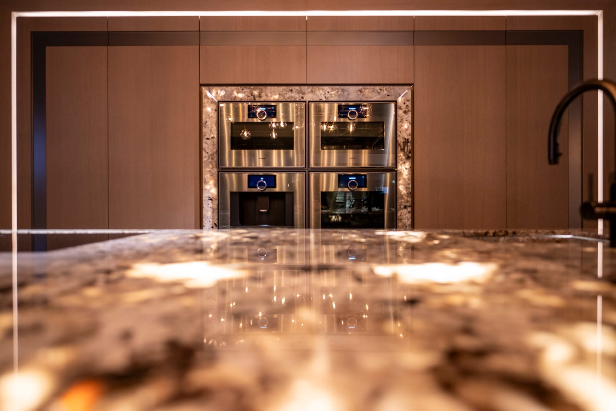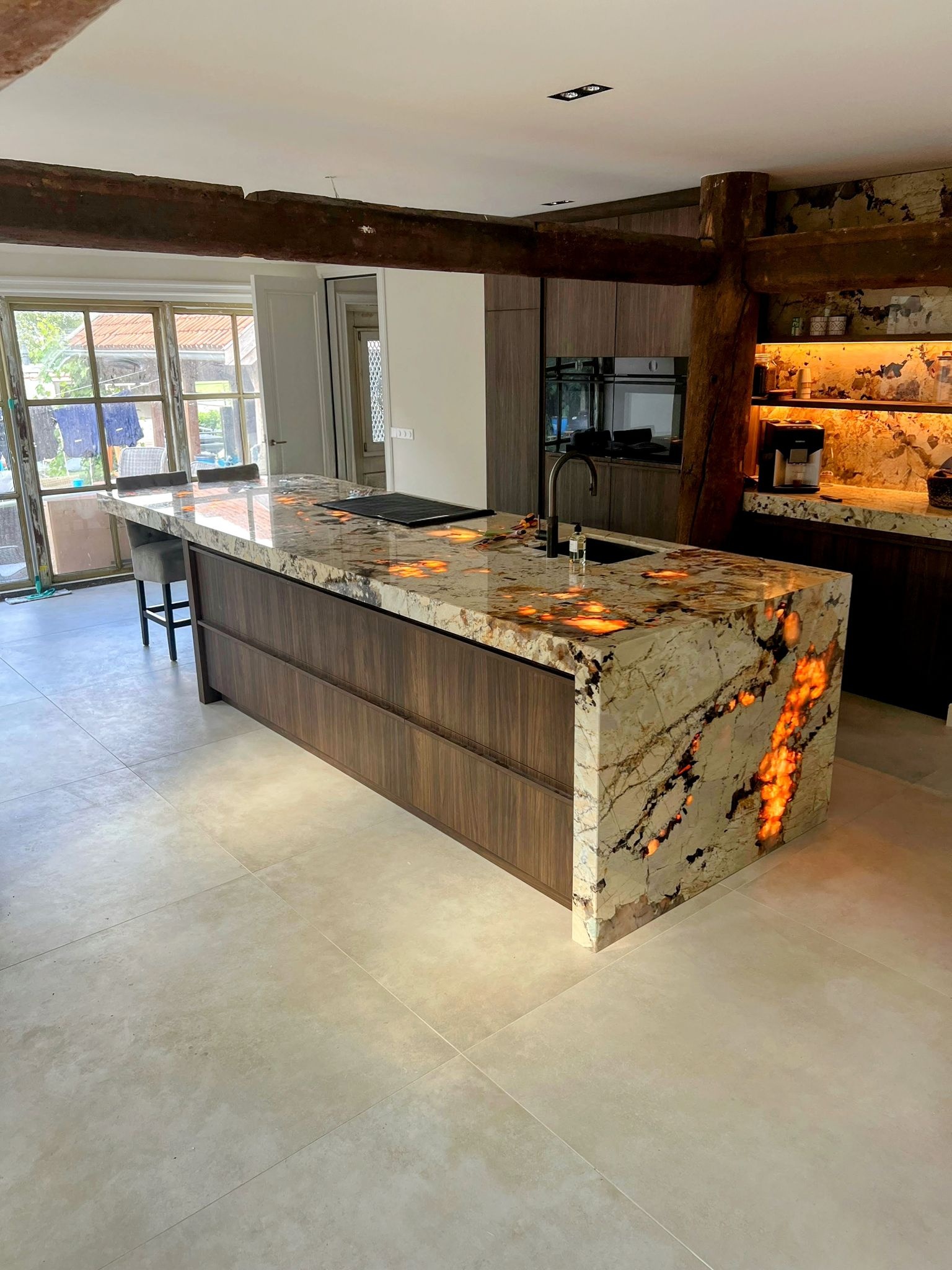 Benieuwd hoe natuursteen van achteren kan worden verlicht? Ontdek onze koppelbare warm witte Natuursteen LED verlichting oplossingen. Koppelbare sheets van 24,5 x 49cm en maar liefst tot 10 meter te koppelen. Maar liefst 4300 lumen per 24,5 x 49cm