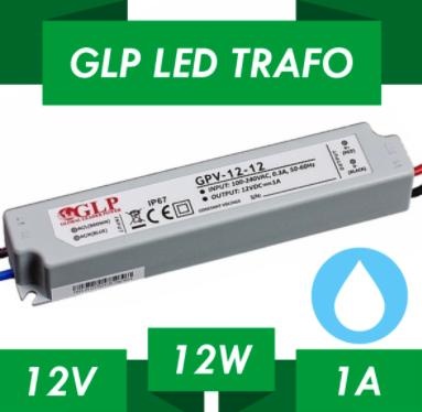 LED voeding 12W 12VDC 1A CV - Waterdicht IP67 - GLP GPV-12-12