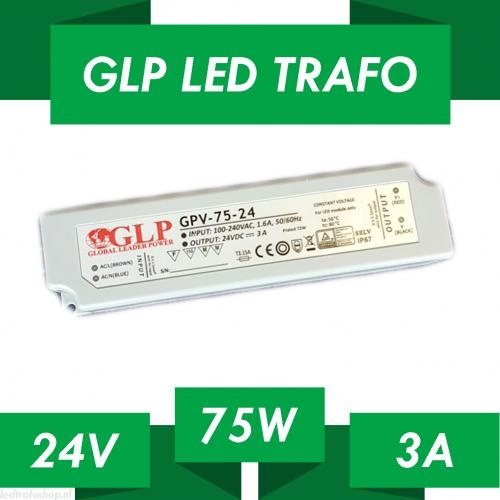 LED voeding 75W 24VDC 3A CV – Waterdicht IP67 – GLP GPV-75-24