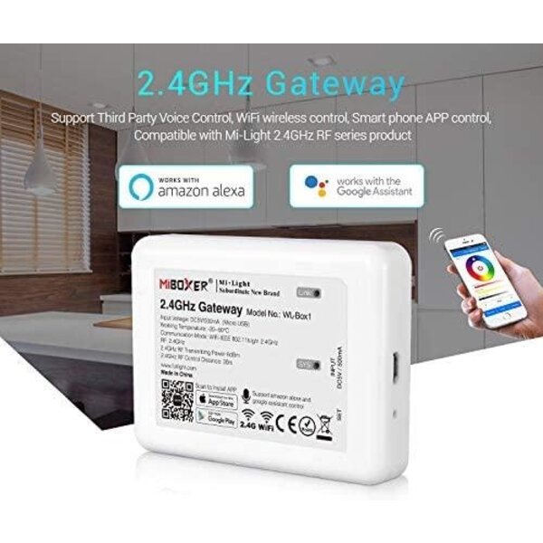 De WiFi module van Mi-Boxer ontvangt direct een WiFi signaal van de app op uw smartphone of tablet en stuurt dit signaal door via de 2.4G RF radiofrequentie, waarmee u dan de LED lampen of LED spots draadloos aan kunt sturen.