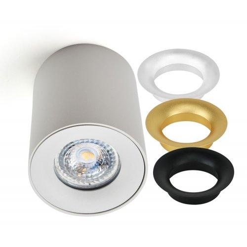 Deze handige witte opbouwspot voor GU10 LED spots wordt geleverd inclusief drie ringen in de kleuren zwart, wit en goud. Zo kun je afhankelijk van jouw favoriete kleur gebruik maken of deze weer veranderen op een later moment.Details van deze unieke witte opbouw spot.