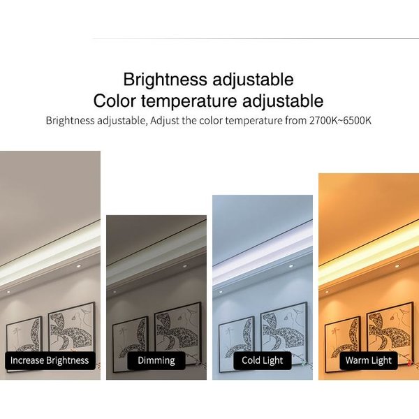 MI-LIGHT TUYA LED controller om enkel kleurige / CCT / dual white / tunable white LED strips te bedienen E2-WR TUYA LED controller om enkel kleurige / CCT / dual white / tunable white en dual white LED strips te bedienen. Wij van profielgigant.nl krijgen vaak vragen over een manieren om LED strips aan te sluiten of koppelbaar te maken met. profielgigant.nl biedt speciale TUYA LED controllers, die ervoor zorgen dat LED strips in 12 of 24 volt met kunnen connecten. Dimmen, aan- en uitschakelen en alles wat u met de app nu en in de toekomst kunt instellen kunt u met uw eigen of onze LED strips! Benieuwd naar de mogelijkheden om Led aan te sluiten op onze LED strips, kom langs voor een demonstratie of stuur ons uw offerte aanvraag.