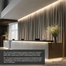 Het VG2-profiel is een voorgemonteerd, vochtbestendig gipsplaatpaneel van 12,5 mm met twee in de fabriek geïntegreerde profielen, klaar voor directe installatie in gipsplaatconstructies zonder extra montagestappen. De profielen zijn voorzien van een beschermkap tegen vuil en beschadiging tijdens de bouw en kunnen optioneel worden uitgerust met LED-verlichting en/of gordijnen voor een strakke en multifunctionele afwerking.