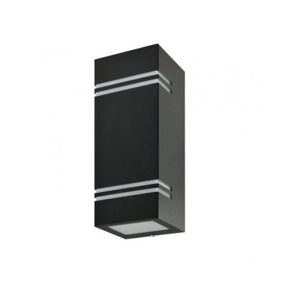 Waterdichte zwarte LED wandlamp voor buiten, waarbij het licht naar boven en beneden langs de wand schijnt.