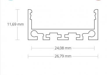 | Afmeting buitenmaat | - L/B/H: 1000 of 2000mm x 26,79mm x 11,69mm |