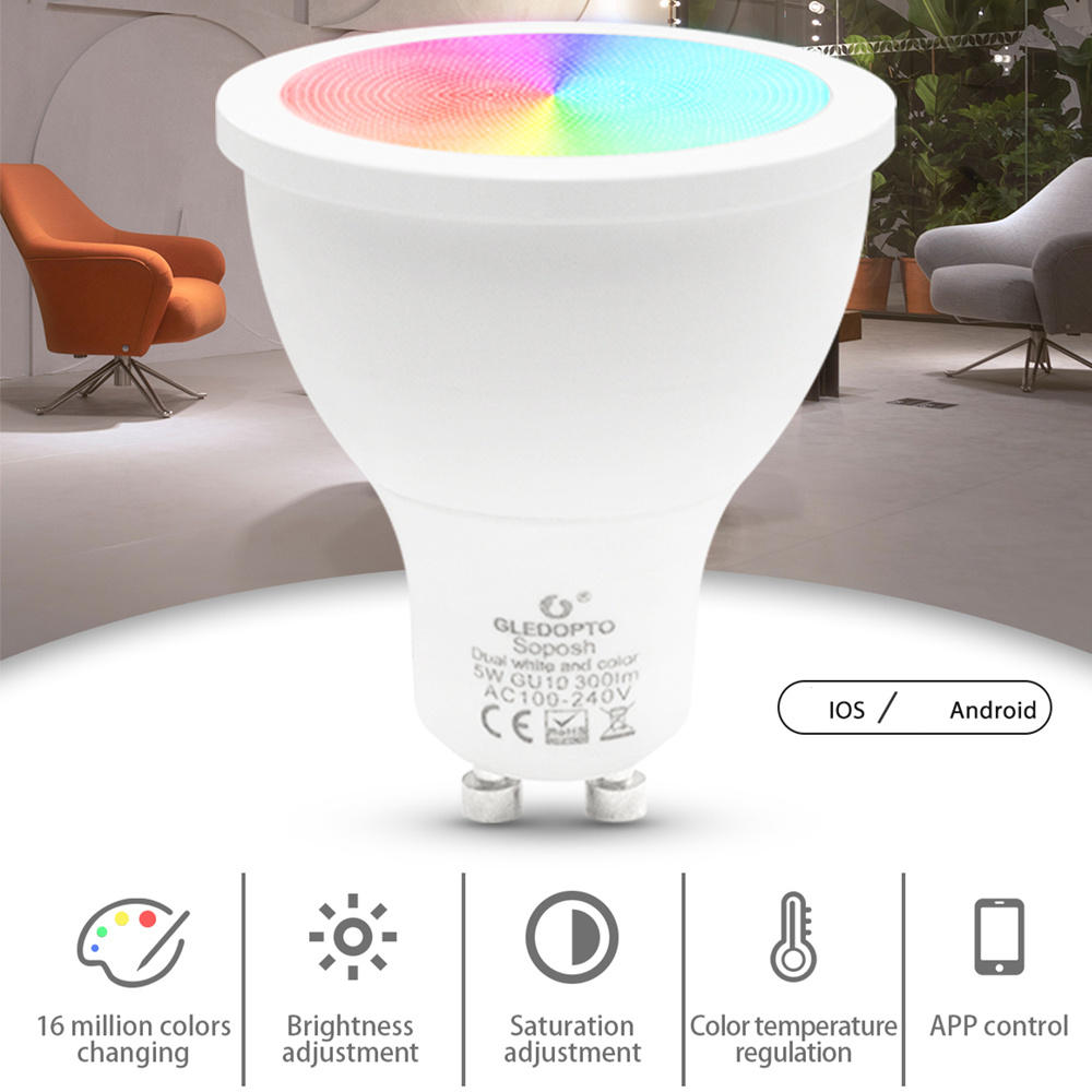De Gledopto zigbee Zigbee Smart LED spot RGBCCT is een slimme lamp die niet alleen warm wit licht biedt, maar ook in staat is om 16 miljoen kleuren weer te geven. Met zijn GU10 fitting en een stroomverbruik van 4,8 watt is deze lamp energiezuinig en biedt hij comfort en gemak met zijn slimme functies.