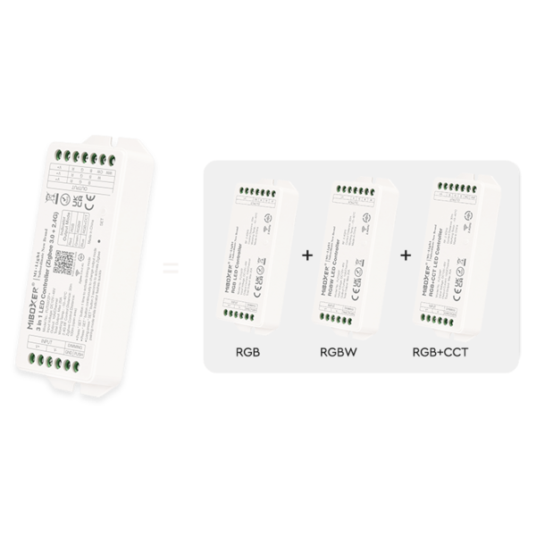 3 in 1 Zigbee LED controller om ieder type 12 of 24 volt en 48 volt RGB/RGBW/RGBWW/RGBCCT LED strips te bedienen