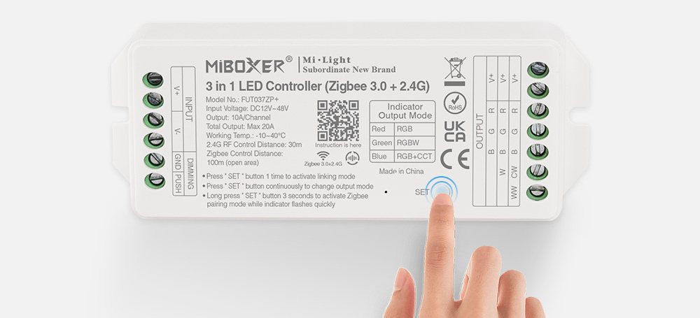 3 in 1 Zigbee + 2,4ghz LED controller 48 volt om RGB / RGBW(W) / RGBCCT LED strips te bedienen - FUT037ZP+
