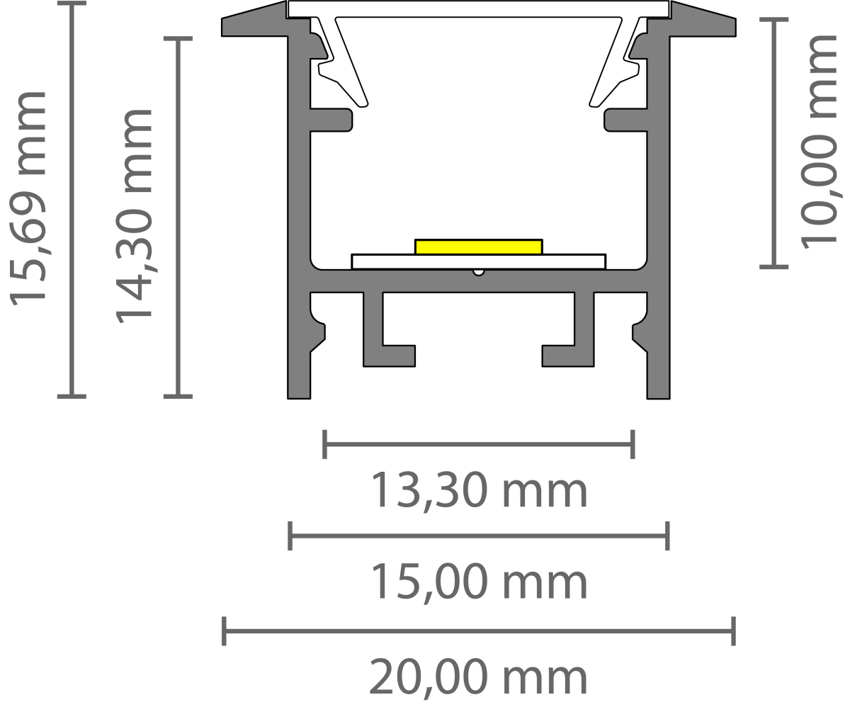 | Afmeting binnenmaat | - L/B/H: 1000 of 2000mm x 15,00mm x 14,30mm |
