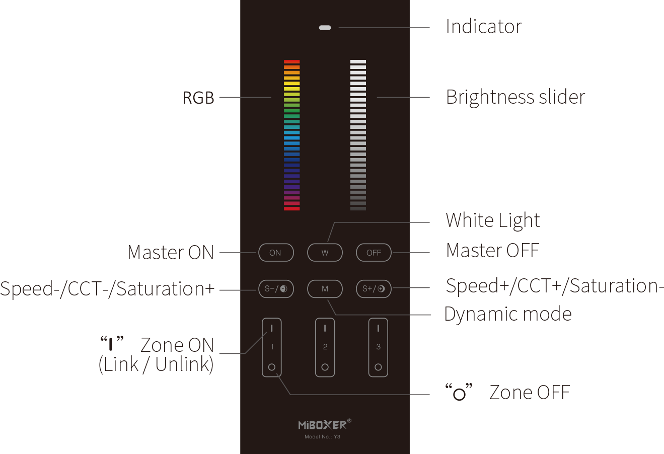 - zwarte LED afstandsbediening 3 zone Miboxer Y3